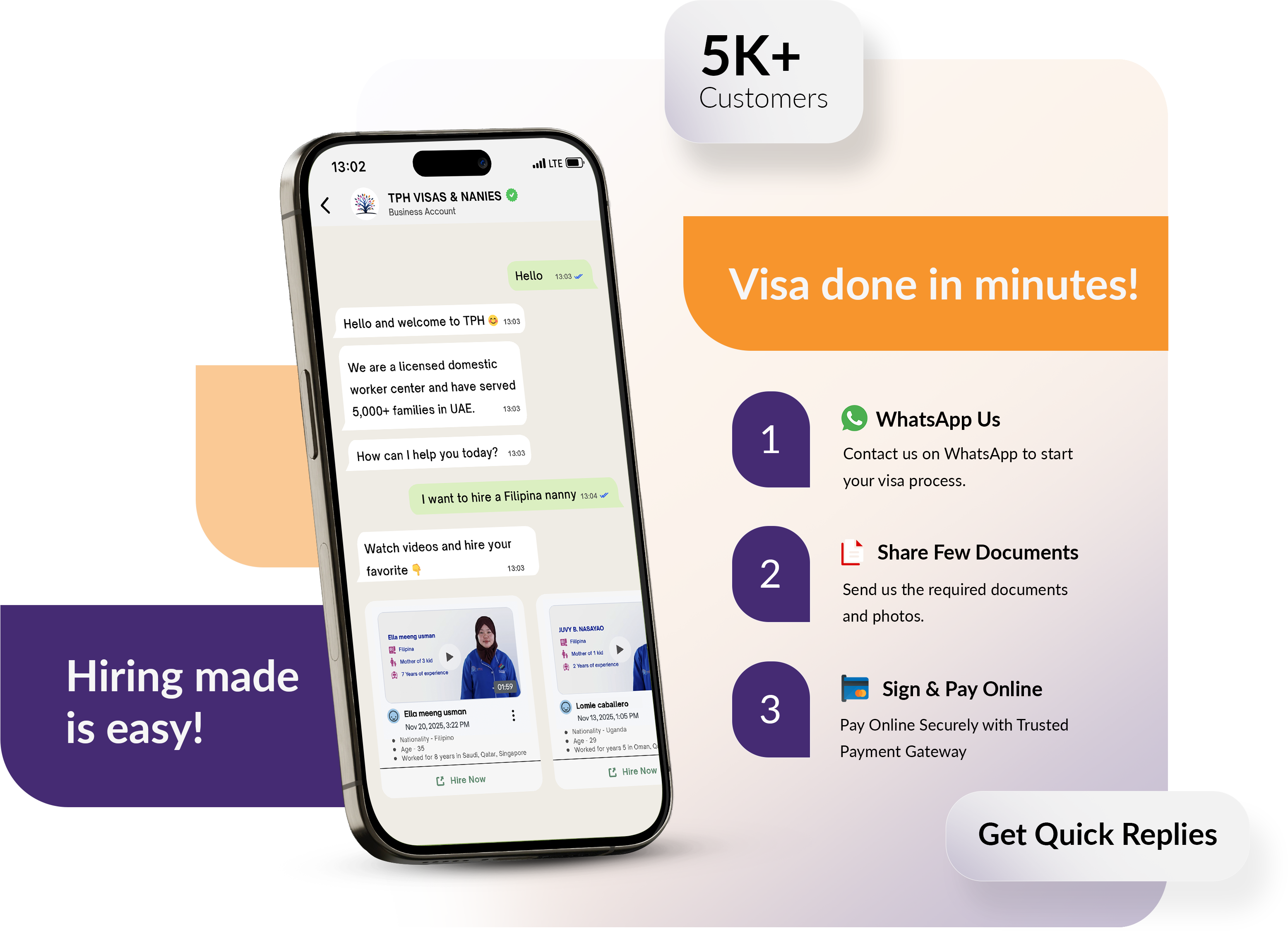In-Person Visits Required | No visits. Fully online via WhatsApp | Up to eight different government offices and agencies | Requires 2 visits, 3 forms, and 24 post-dated cheques |